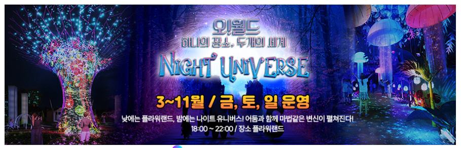 *나이트 유니버스 입장료의 경우에는 야간개장 입장권과 동일하게 적용됩니다.