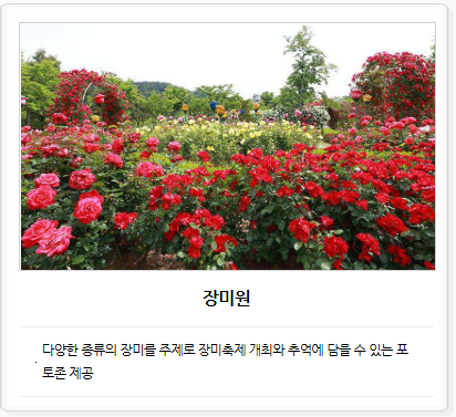 | 장미원 | 다양한 종류의 장미를 주제로 장미축제 개최와 추억에 담을 수 있는 포토존 제공 |